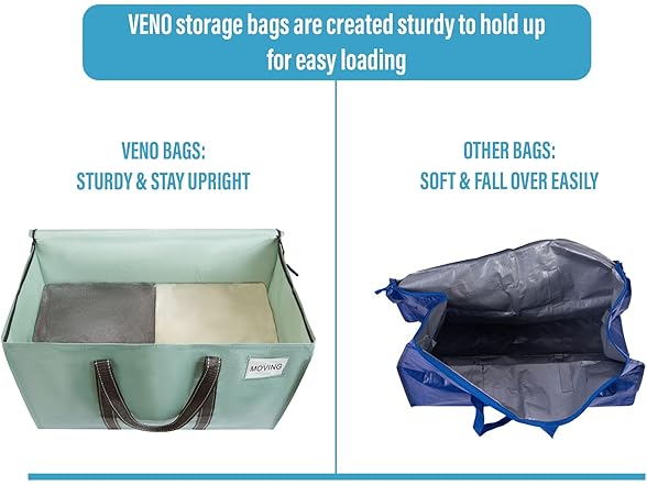 - Stands Upright for Easy Loading – You don’t have to worry about your bag falling over while trying to load or unload. VENO large storage bags stay upright for easy loading with our sturdy and durable PP Woven material that lasts a lifetime and makes moving and storing a breeze. Find stability and security with VENO moving bags, storage bags for clothes, and storage boxes with lids.