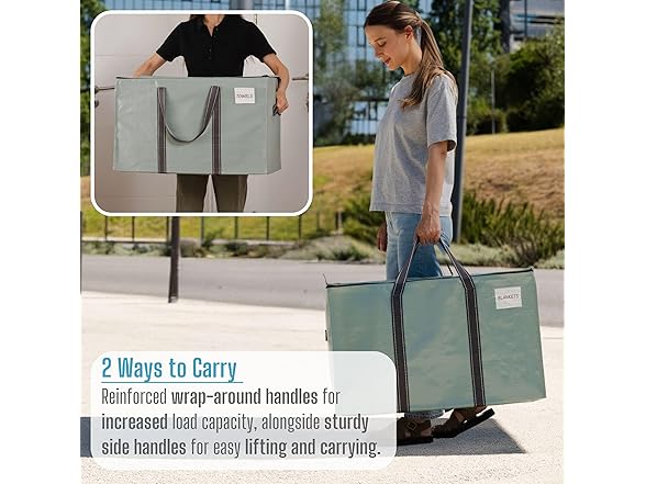 - Reinforced Wrap Around Handles – No need to worry about if your handles are going to tear as you carry heavy loads. Carry our organizer storage totes by the long and strong poly webbing handles which wrap around and under the bag for maximum durability or by the additional heavy-duty side handles. Hold up to 50 pounds and store up to 27 gallons with uncompromised quality designed to hold plenty.