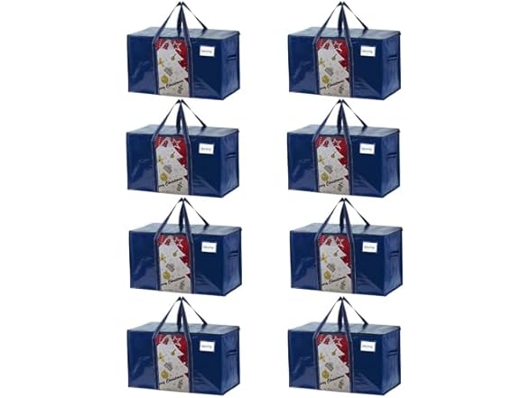 VENO Environmental Commitment: It's our mission and commitment to minimize our environmental footprint, aiming for a cleaner, more sustainable future. Crafted for the shopper passionate about our planet, our top-notch, sustainable bags are primarily made from post-consumer materials, diverting plastics from oceans, lakes, and landfills. These bags aren't just for those with a green heart but also those who value stylish, functional products. Become a part of our movement in shielding our beloved Earth. The Strongest Moving and Storage Bags: VENO Extra-Large Heavy Duty Moving and Storage Bags are second to none in durability. Constructed from elite PP-woven material, our bags showcase features like a clear window and tag pocket, a dual-tab 3-sided zipper for straightforward loading, and two sets of robust poly webbing handles, setting them apart from conventional moving supplies and Ikea bags. These aren't just moving bags, they're an upgrade. Extremely Versatile: VENO Moving Bags are versatile, multifunctional wonders tailored for diverse occasions like moving, relocating, organizing, traveling, and camping. They can be used for clothing storage, books, shoes, linens, pillows, blankets, etc. Store Christmas holiday decor like lights, decorations, wreaths, and ornaments! They are fantastic alternative to traditional laundry baskets and ideal for college students, families living in apartments and frequent travelers. Make your life easier with VENO bags that are lightweight, water-resistant, and easy to clean! Whether you need extra large storage bins with lids or heavy-duty storage bags for moving,