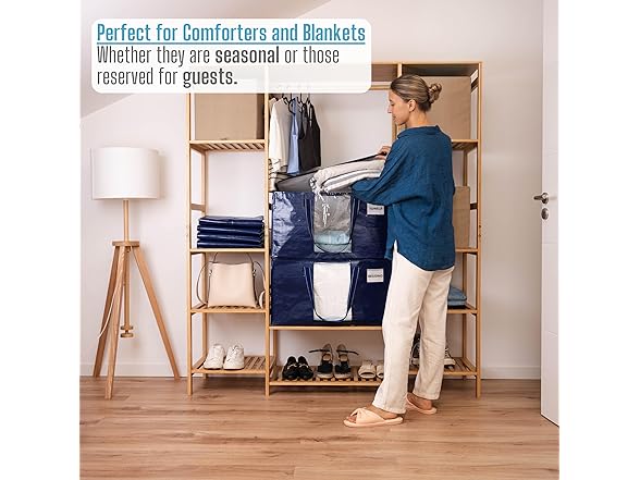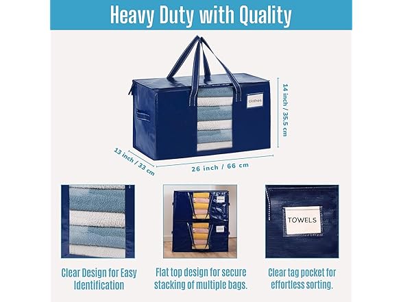 - Instant Identification – Say goodbye to the frustration of searching for your belongings. With a large transparent window panel, this bag streamlines sorting and allows for quick recognition of your belongings. The clear tag pocket facilitates the organization of essentials such as down comforters, pillows, and clothes. Simply create a custom label and slot it in.Remember to use this labeling feature for organizing college dorm room essentials, moving to a new home, or storing items in the garage.