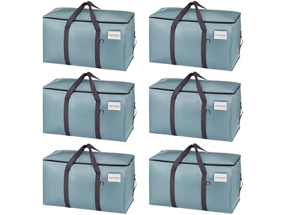 VENO MG-0025 6 Pack Moving Bags, Upgraded Heavy Duty, Moving Boxes Alternative, Packing Storage Supplies for Dorm Room Essentials with Zipper for Clothes, Large Totes for Packaging (Light Blue, 6 Pack)