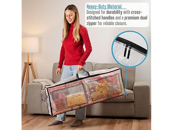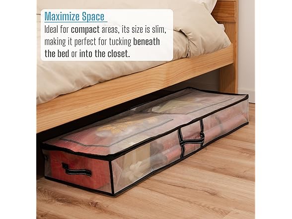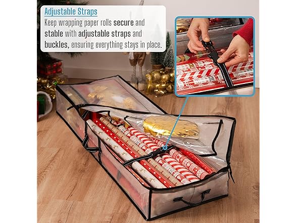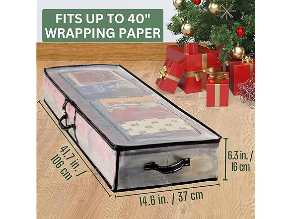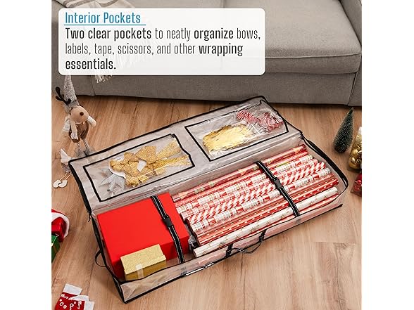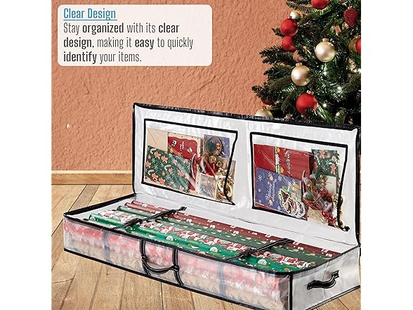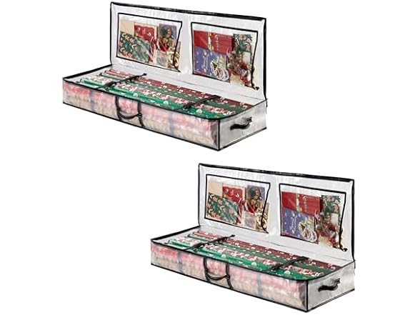 Veno MG-0027-CLRB2 2 Pack Clear Wrapping Paper Organizer Storage Box for Christmas Gift Bags and Holiday Accessories, Underbed Storage Container with Interior Pockets, 40 Inches Long Fits 24 Rolls