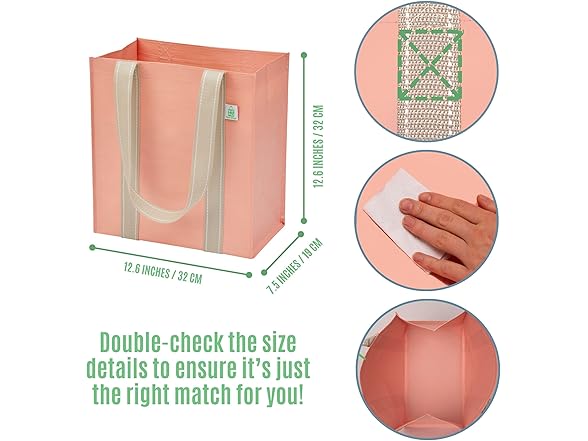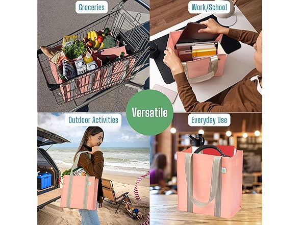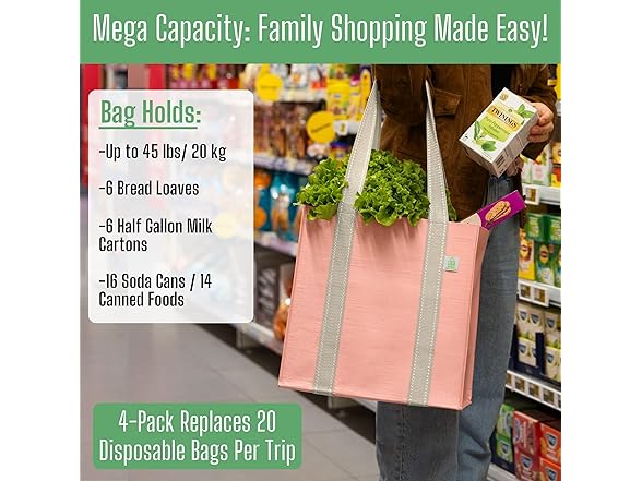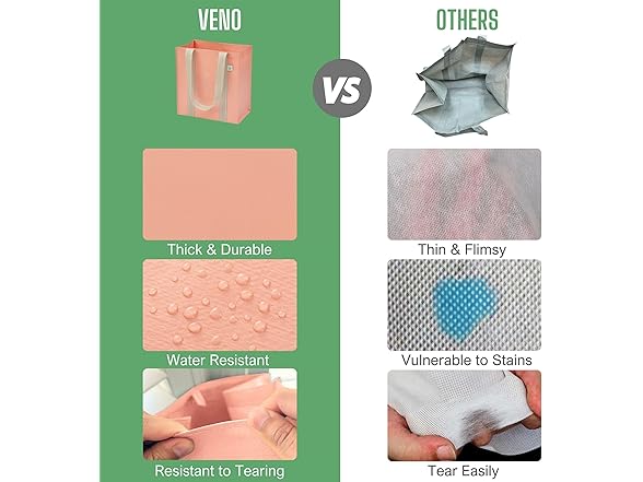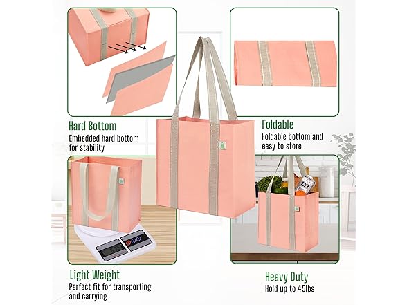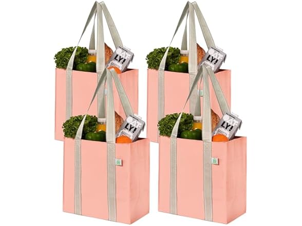 Veno PGB-0006-PCH4 4 Pack Reusable Grocery shopping Bags, Small Tote Bag w/ Handle Hard Bottom, Heavy Duty, Foldable Carrier