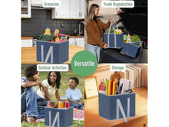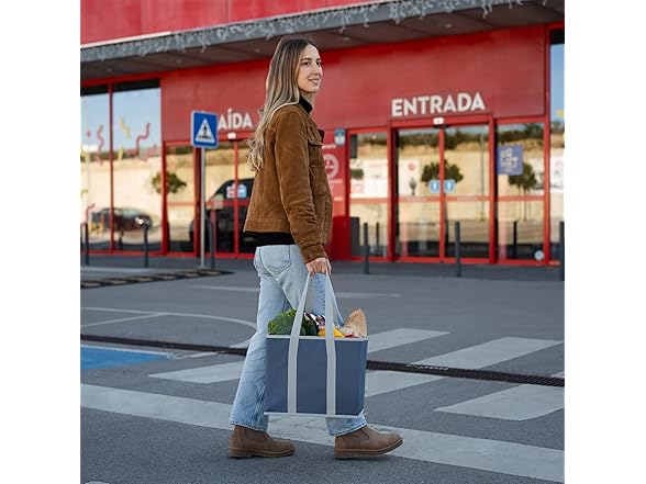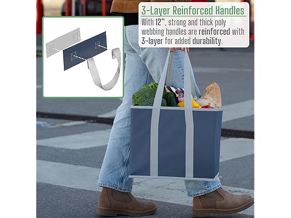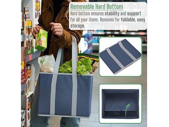 VENO SB-0002 3 Pack Reusable Grocery Bags, Shopping Bags for groceries, Utility Tote with Handles and Hard Bottom, Foldable Shopping Cart Organizer, Heavy-Duty (Dark Blue, 6 Gallon-3 Pack)