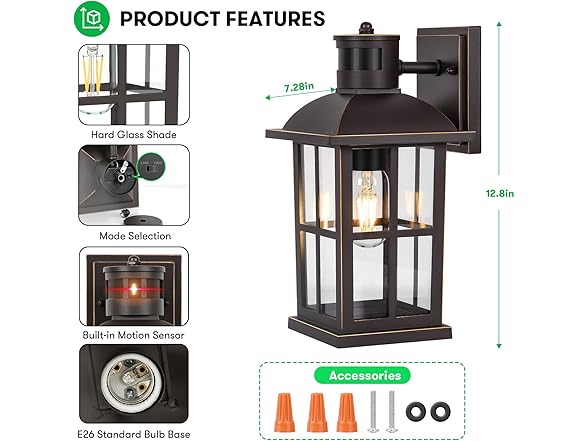 VerRon B0D3TR5B24 13in Motion Sensor Porch Light