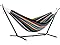 This is our best selling combination hammock and stand. The double hammock is made with 100-Percent cotton, creating a comfortable refuge for an afternoon snuggle. The space-saving 9-Foot stand is constructed of heavy duty steel and assembles in minutes without any tools. Plastic caps are used on the ends of the steel tubing to create a soft finish. With the included carrying case, you'll enjoy the freedom of setting up your hammock anywhere and no longer relying on those 2 perfect trees! The hammock bed is 63 x 94-Inch, with a total length of 130-Inch. Accommodates two adults. 450-Pound capacity.