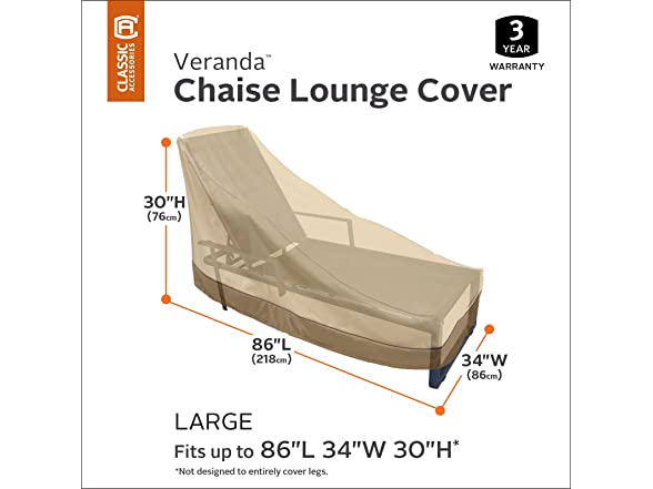 - Fits most chaise lounges up to 86" long x 34" wide x 30" high