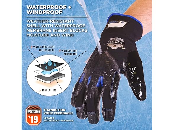 - WATERPROOF/WINDPROOF & BREATHABLE – Breathable membrane insert creates a barrier which blocks cold, moisture and wind to keep hands warm and dry when working in snow and cold temperatures