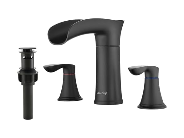 - Innovative 2 handles Waterfall Faucet: The unique waterfall design allows you to enjoy comfortable experience of fresh and pure fountain stream. This waterfall bathroom faucet comes with layer filtering, providing the pure & clean water to take care your daily health. This modern faucet has fashion appearance, perfectly matched to your bathroom sink, washbasin, RV, Lavatory, vanity. With the strict 10-grade salt spray treatment standard, the surface of this WaterSong black bathroom faucet becomes anti-scratch and anti-corrosion