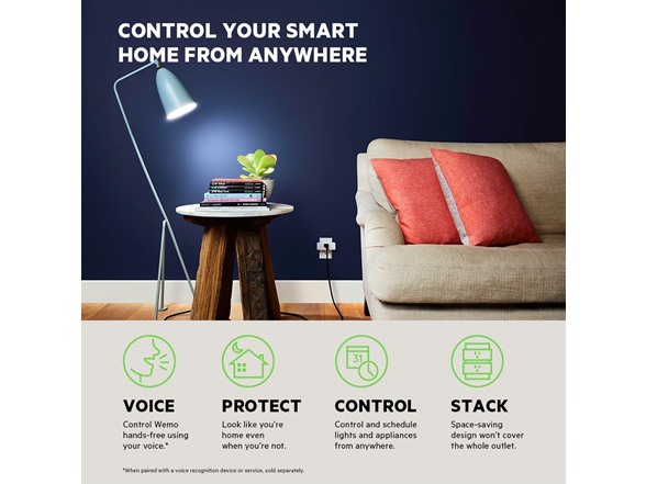 Wemo Mini lets you easily set automatic schedules for any device that’s plugged in--from lamps to fans to space heaters. Using the free Wemo app, you can schedule a fan to turn on at noon, or synchronize a lamp with the sunset so you never come home to a dark house.