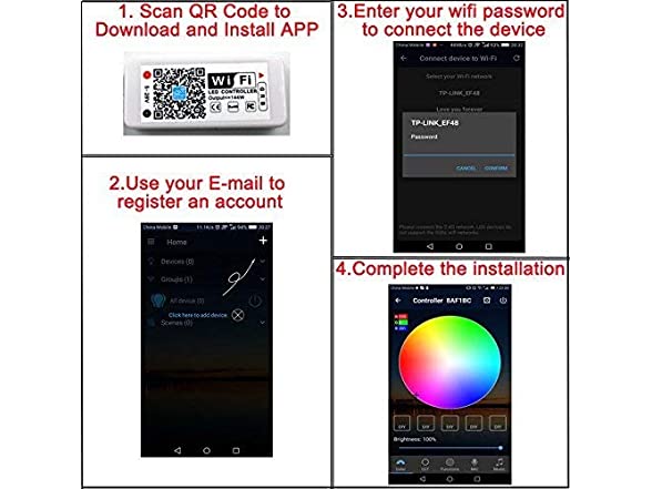- 16 Million RBG Colors -- Built-in 5050 SMD LED flexible lighting strip, it can achive in 16 million colors and be adjusted from 1% to 100% brightness by your smartphone. Best for decorating your home, especially great for holidays and events like Christmas, Halloween, Party.