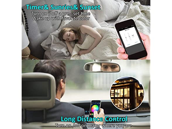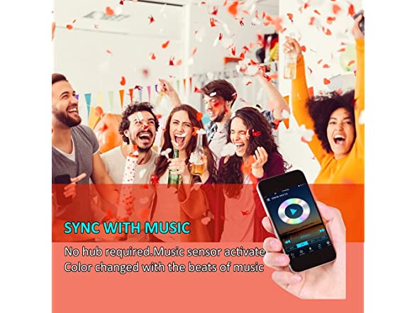 - Sync with Music & Timer mode -- The light can flash to sync with music melody when you control with your phone. You can make appropriate schedule for different occasions, shuch as wake-up or bedtime mode, party mode, etc.