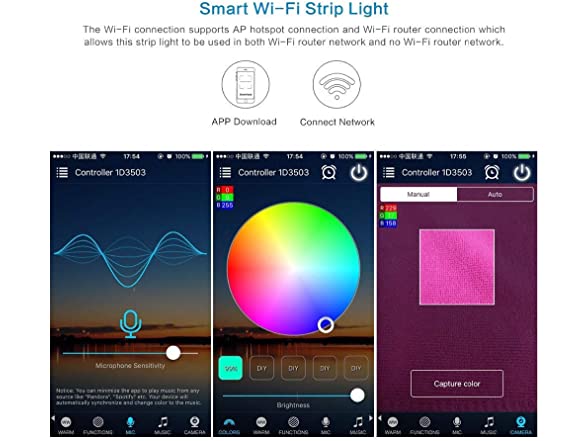 - 3 Control Mode -- [Alexa Mode] Speak to Amazon Alexa Echo, you can ask the light strip to turn on/off, change colors or dim. [WiFi Mode] It allows you to control the light with your smart phone through "Magic Home Pro" App. [Remote Controller] You can also control the LED light with the 24 keys IR remote controller.