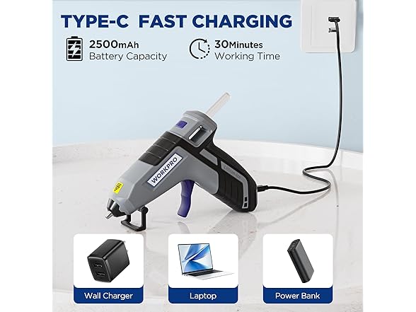 WORKPRO 3.6V Hot Glue Gun w/20 Sticks