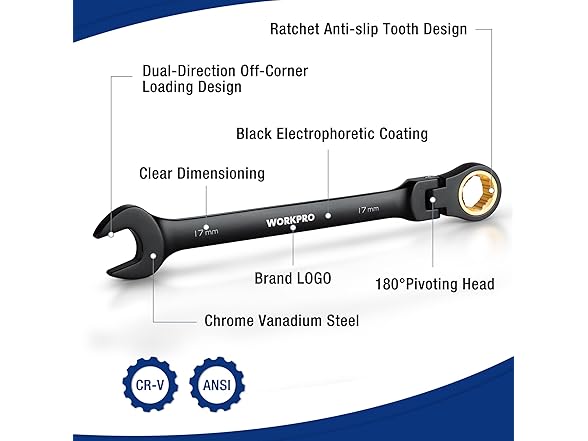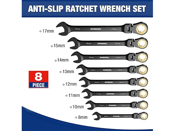 WORKPRO 8pc Flex Ratchet Wrench Metric 8mm-17mm