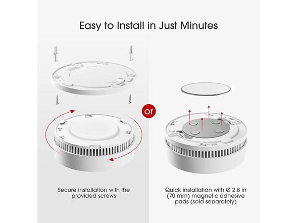 - SLEEK LOOK & DURABLE DESIGN: This smoke alarm is equipped with a low-disturbance LED light in its normal status and a sleek design with a diameter of 4.8 in and a thickness of 1.7 in, allowing for installation anywhere; its durable ABS housing is resistant to high temperatures