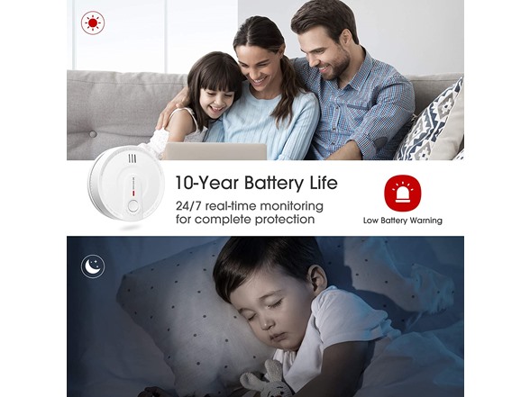 - AUTO CHECK & LOW-BATTERY WARNING: This 10-year battery smoke alarm has multiple parameters for self-checking, low-battery warning, and malfunction indication; if the smoke alarm has a low battery, you will be notified immediately to identify and solve the problem quickly without losing the protection of your home