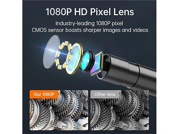 Car Inspection Borescope Industy-Leading 2MP camera 1080P CMOS sensor to provide you with absolutely realistic visual effects, which 1920*1080P high-definition image. No need download APP.