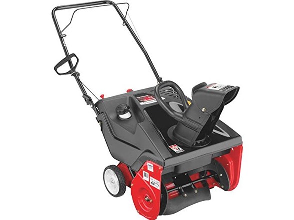 Clear your snowy driveway with ease this season using a snow thrower that works just as hard as you do. The Yard Machines 21” Single Stage Electric Start Gas Snow Thrower is ideal for smaller jobs and light snowfalls. This unit is powered by a reliable 179cc OHV electric start gas engine and clears pathways up to 21” wide and 13” in height in one quick pass. The 6.5” clog-resistant chute can be rotated to the direction you want and helps you stay clear of blowback during operation. The 7” x 1.5” wheels offer traction even in tough winter weather conditions. Perfect for small- to mid-size smooth driveways, walkways, and patios, this MTD Pro 21" snow thrower can clear 8" of light snow with ease.