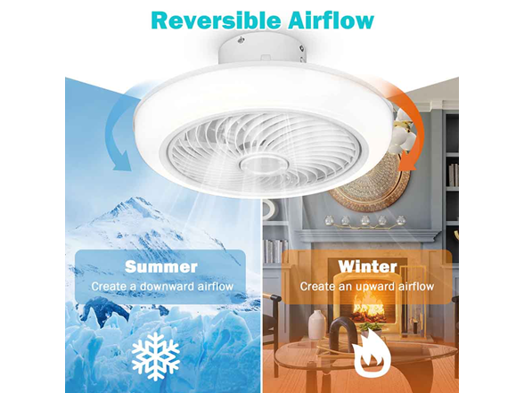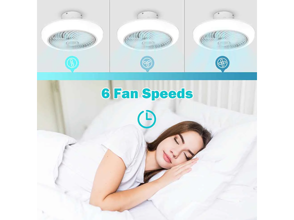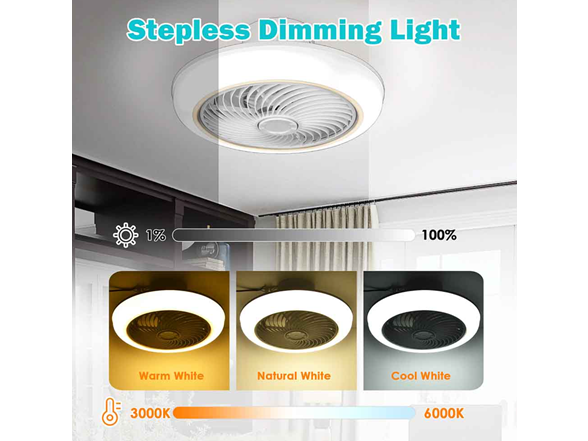 Ceiling Fan with Light Enclosed features stepless adjustable brightness from 1% to 100% and color temperature from 3000K to 6000K, six-speed adjustment, and reversible airflow, perfect for creating a bright, fresh and comfortable atmosphere for garages, basements, workshops, laundry rooms and more.