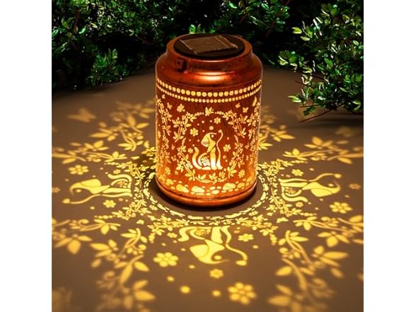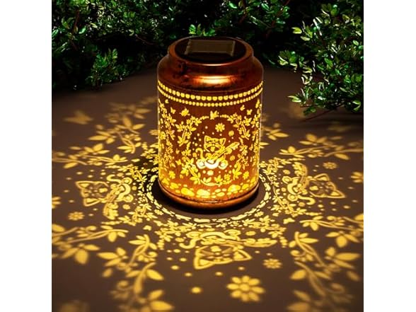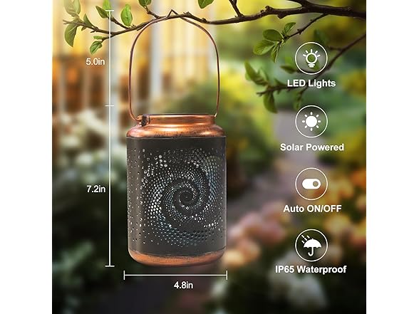 - Solar LED Lantern: Solar lantern is made of copper, vintage decoration style, carved design, decorate your garden, yard, pathway, table. Let your garden more sparkling!