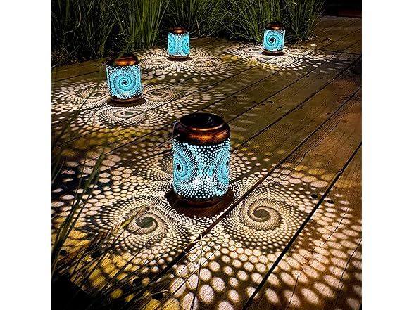 YISITEONE --- Lighten up your life. YISITEONE specializes in outdoor garden decoration products since 2005. In order to improve people's life interests and quality of life, turn your home into a fantasy wonderland. This outdoor solar lamp incorporates spiral pattern elements of modern design for an elegant and atmospheric appearance. When the lights go on at night, they present a myriad of stunning projections. It is very suitable for modern and fashionable people. Auto turn ON/OFF, intelligent sensing light No wiring required, conveniently put anywhere. Weather resistant, high-Performance even on a rainy day Easy installation, Simple switch setup and handle design Durable construction: Made of hardening thicken metal l lBe sure to TURN ON the switch at the top of the lantern Cover the solar panel to check if it works Make sure the panel receives full direct sunlight for 6-8 hours Insufficient sunlight or charging time may affect the working time.
