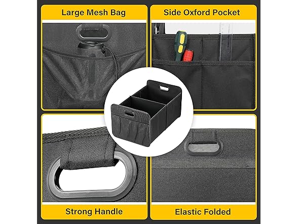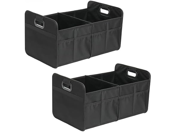 YSSOA Trunk Organizer for Car/SUV/Truck, Collapsible 2 Compartment Automotive Storage Box, 600D Waterproof Oxford Polyester 50L Travel Accessories, Anti-slip & Leak-proof, Black, 2 Pack