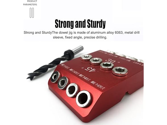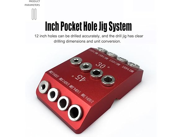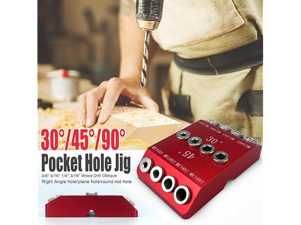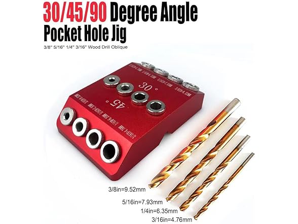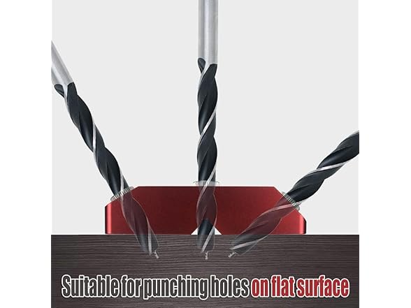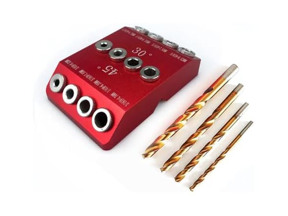 This 30°/45°/90° Woodworking Drill Guide is a versatile and durable tool designed for precise angle drilling in various materials. Made from high - grade industrial aluminum alloy with a red anodized surface, it offers excellent finish and corrosion resistance. The guide features fixed angles of 30°, 45°, and 90°, paired with four guide hole sizes (3/8", 5/16", 1/4", and 3/16") to accommodate most cable railing protector sleeves and lag screws. It includes (or is compatible with) four titanium - plated drill bits for quick and sturdy drilling. Ideal for use with locking C - clamps and F - clamps (not included), this drill guide ensures burr - free and crackless holes in wood, aluminum, and high - speed steel posts, making it perfect for deck railing, cable railing, stair deck railing, and DIY projects.