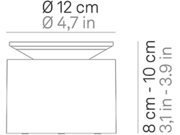 Push-up is a portable and rechargeable battery-powered table lamp. By pressing the top part of the lamp, it lifts up and simultaneously turns on; by pressing it again until it closes, the lamp turns off. Underneath the base, there is a touch controls that, when the top part of the lamp is lifted, allows for turning off, adjusting the brightness, and selecting the colour temperature of the light between 2200 K, 2700 K, and 3000 K. Thanks to a high protection index, the lamp can also be used outdoors. It comes with a contact charging base; charger not included. The lamp has a height of 80-100 mm and a diameter of 120 mm. The colour is white.