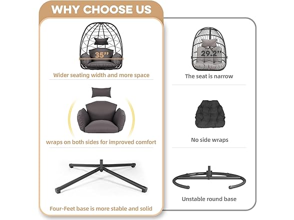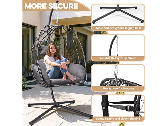- 【Built to Last for Years of Enjoyment】Handwoven from excellent weather-resistant PE wicker and supported by a reinforced powder-coated steel frame, our egg chair delivers unwavering stability with a 350-lb weight capacity for years of reliable enjoyment