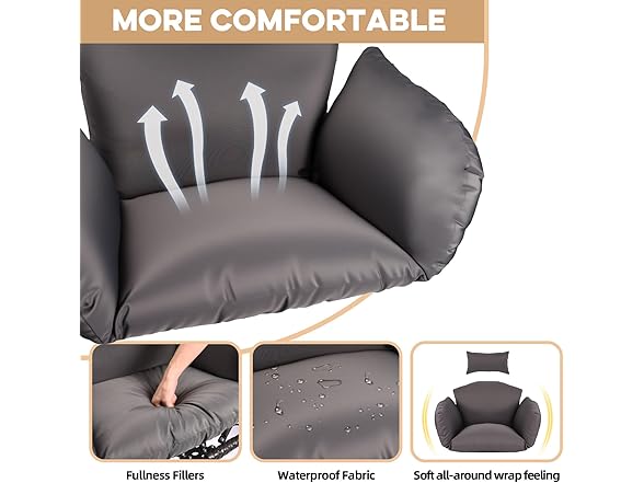 - 【Versatile for Every Lifestyle】This adaptable egg chair transforms any space -a reading nook in your bedroom, a meditation spot on your balcony, or a chat area in your garden. Its weather-resistant properties make it ideal for both indoor and outdoor use